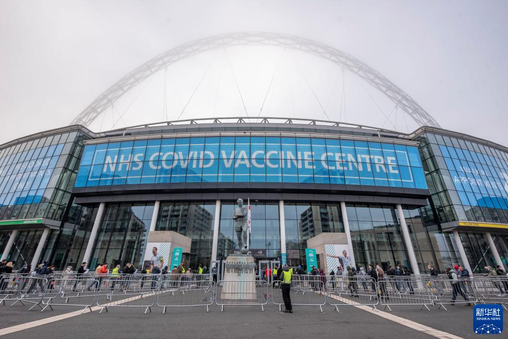 12月19日,人们在英国伦敦的温布利体育场新冠疫苗接种中心外排队等待。