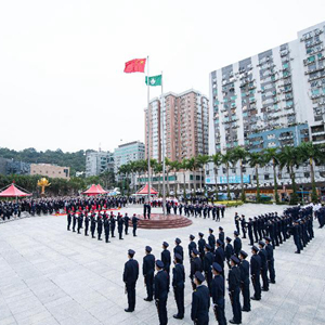 当日,内地奥运健儿访澳代表团在澳门金莲花广场参加庆祝澳门回归22周年升旗仪式。