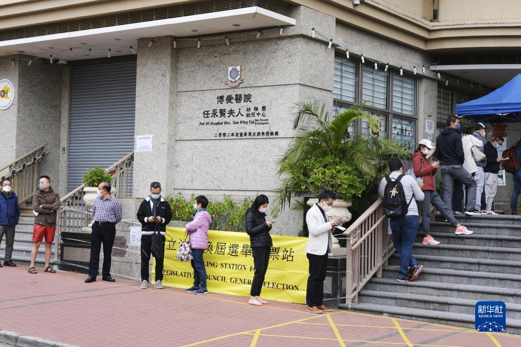 在位于香港黄埔的投票站,选民在排队准备投票(12月19日摄)。新华社记者 王申 摄