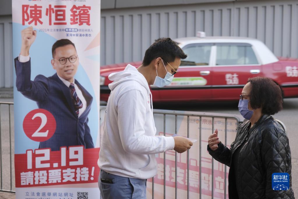 陈恒镔(左)在社区街头倾听市民声音(12月8日摄)。新华社记者 王申 摄