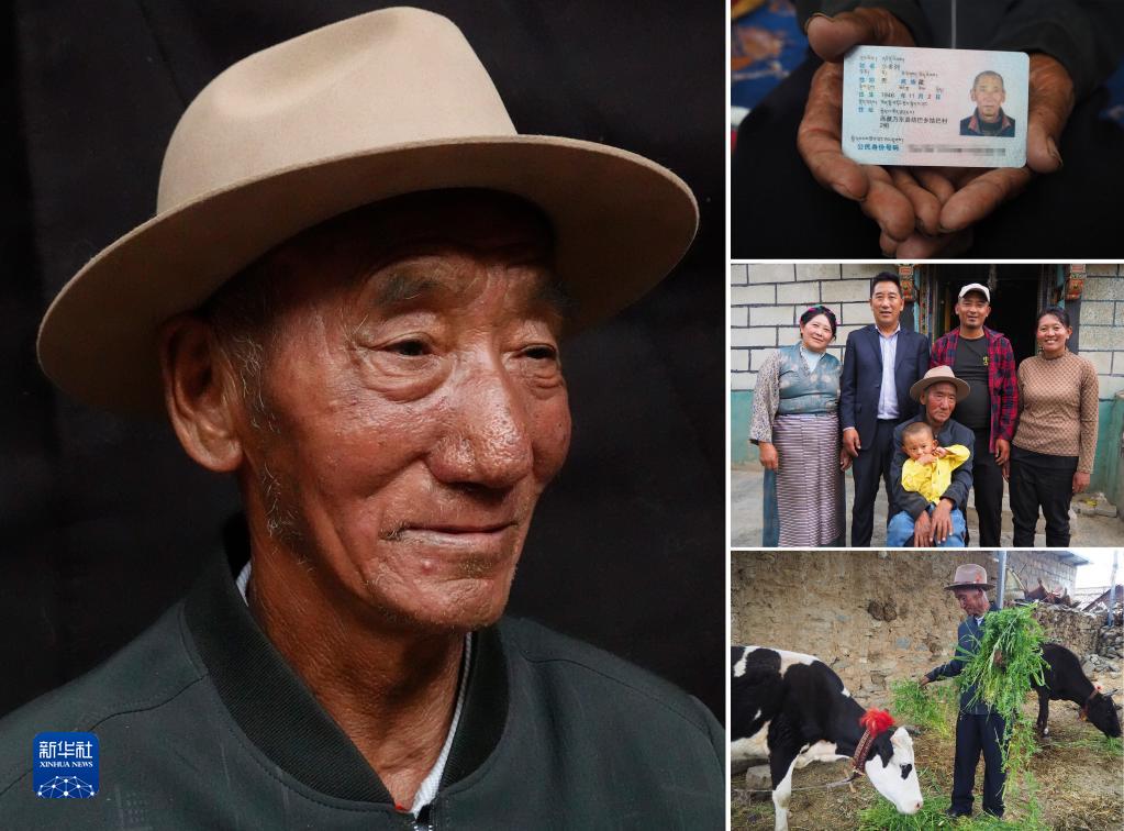 右上:小多列老人的身份证(6月23日摄,新华社记者金一清摄);