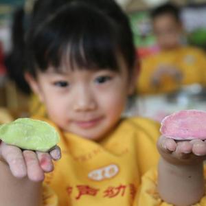 12月20日,山东省枣庄市市中区中兴小学老师(左二)在教学生包饺子。