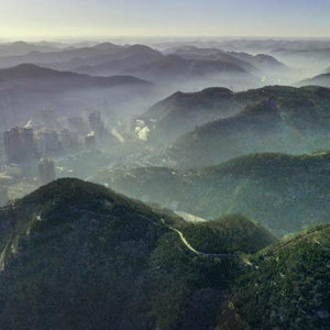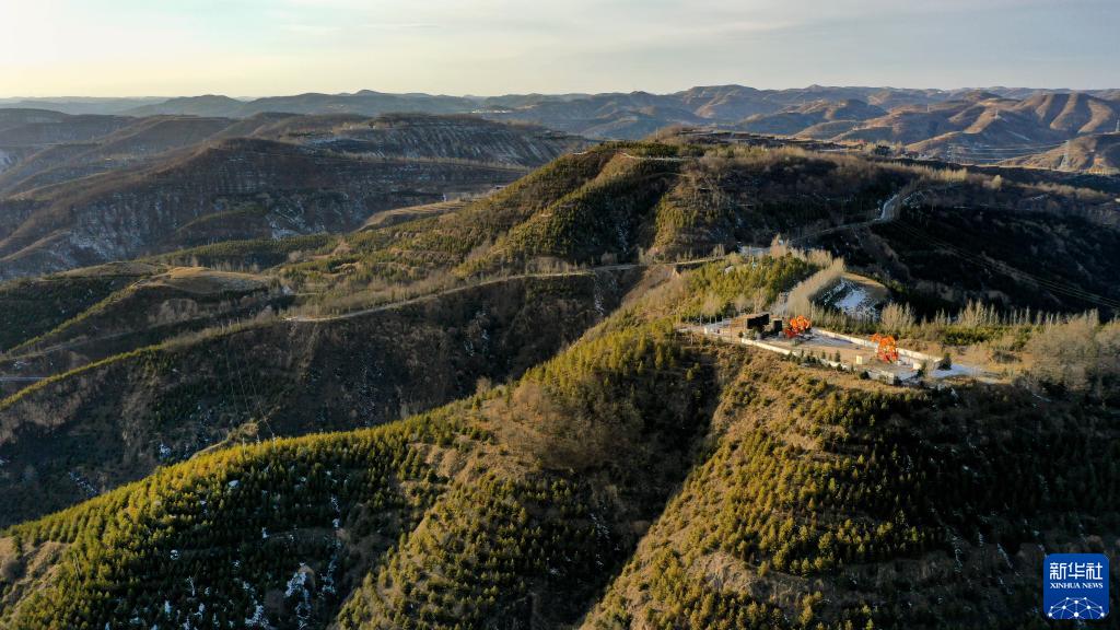隆冬时节,延安市吴起县的山山峁峁被茂密的山林覆盖(12月19日摄,无人机照片)。