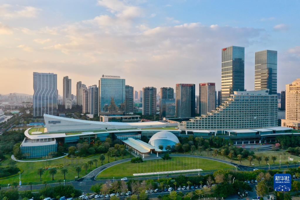 厦门国际会议中心及周边建筑(12月9日摄,无人机照片)。