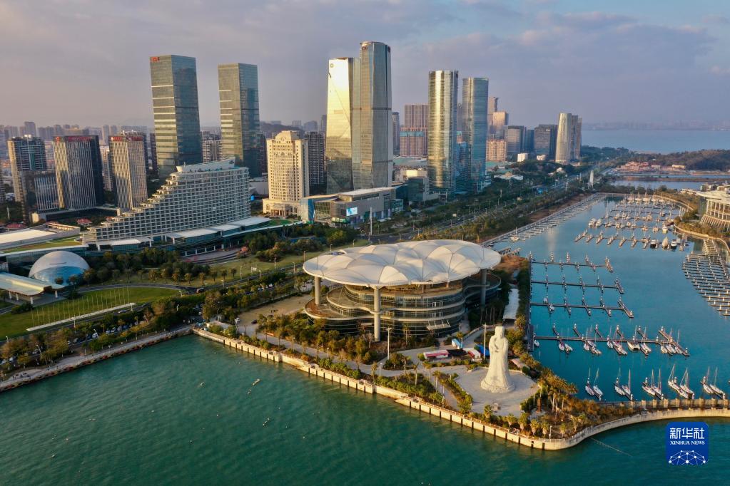 厦门国际会议中心附近的中央商务区(CBD)建筑群(12月9日摄,无人机照片)。