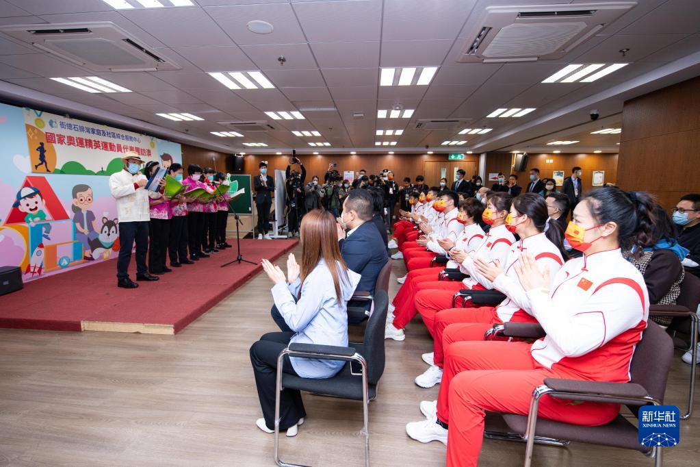 12月21日,内地奥运健儿代表团成员在澳门街坊联合总会石排湾家庭及社区综合服务中心观看表演。