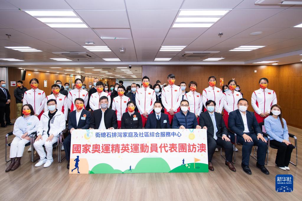 12月21日,内地奥运健儿代表团成员与澳门街坊联合总会人员合影。