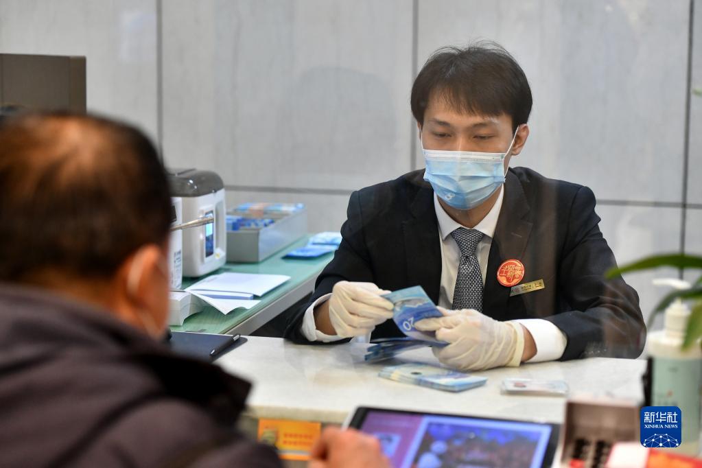 12月21日,中国工商银行北京西客站支行的柜台工作人员(右)在点数第24届冬季奥林匹克运动会纪念钞。
