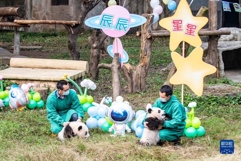 当日,重庆动物园为大熊猫龙凤胎宝宝“奇珍、奇宝”,以及大熊猫双胞胎宝宝“星星、辰辰”举行命名活动。