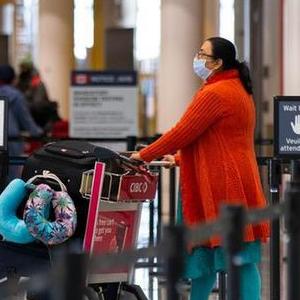 12月21日,在加拿大安大略省多伦多皮尔逊国际机场,戴口罩的入境旅客前往新冠检测站。