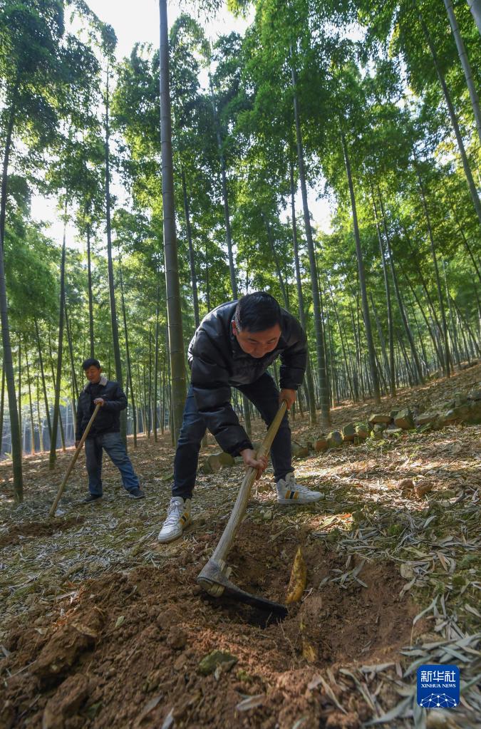 冬至前后,浙江省湖州市吴兴区东林镇南山村的村民在承包的万亩竹林开启了忙碌的冬笋采收季。南山村目前有竹林1万余亩,当地依托生态资源优势促进百姓增收,全村400多户村民承包竹林后,通过挖笋售竹、组织亲子活动、农家乐餐饮等方式实现户均每年增收3万元左右。