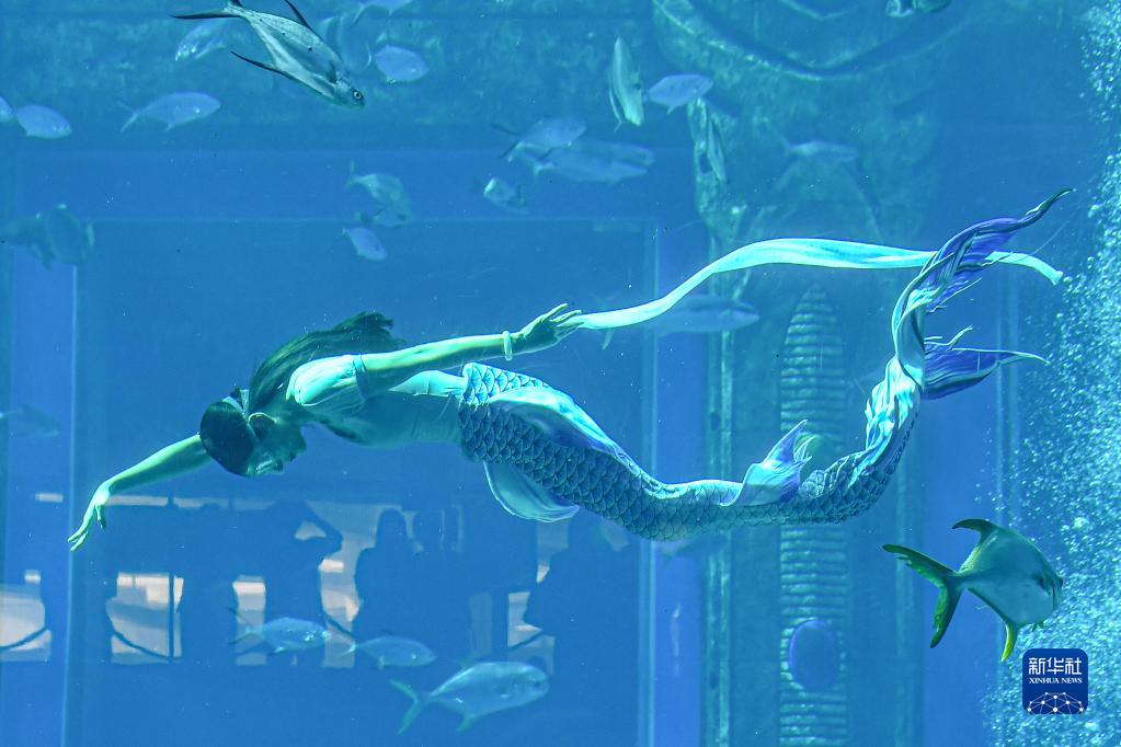 当日,由国家体育总局水上运动管理中心等单位主办的首届中国美人鱼表演赛在海南三亚亚特兰蒂斯举行决赛。