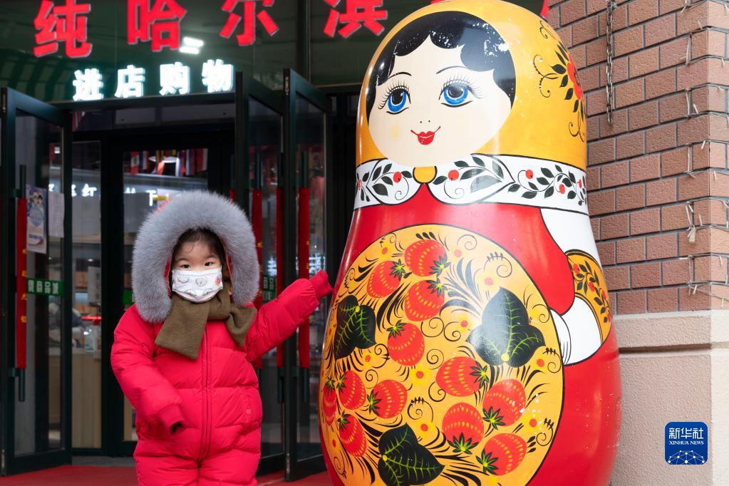 12月22日,市民在哈尔滨市中央大街上游览。