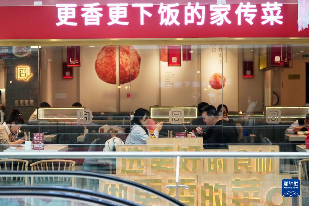 12月22日,市民在哈尔滨市香坊区一刚恢复营业的大型商场的餐饮区就餐。