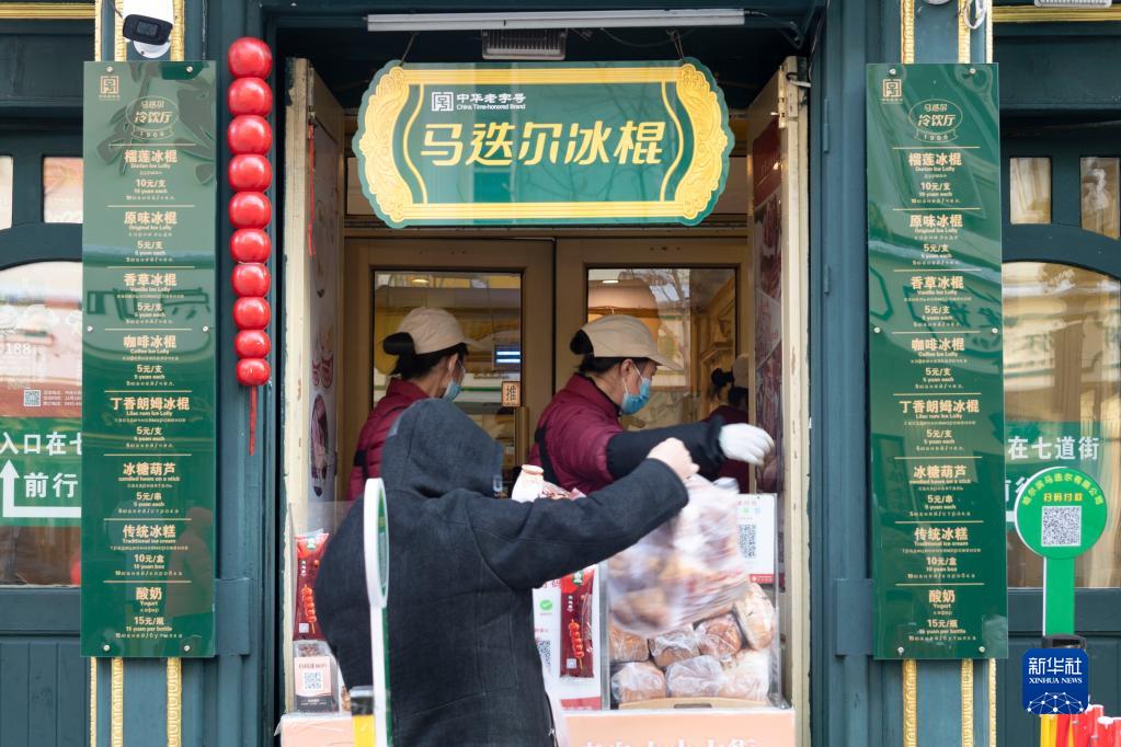 12月22日,市民在哈尔滨市中央大街购买食品。