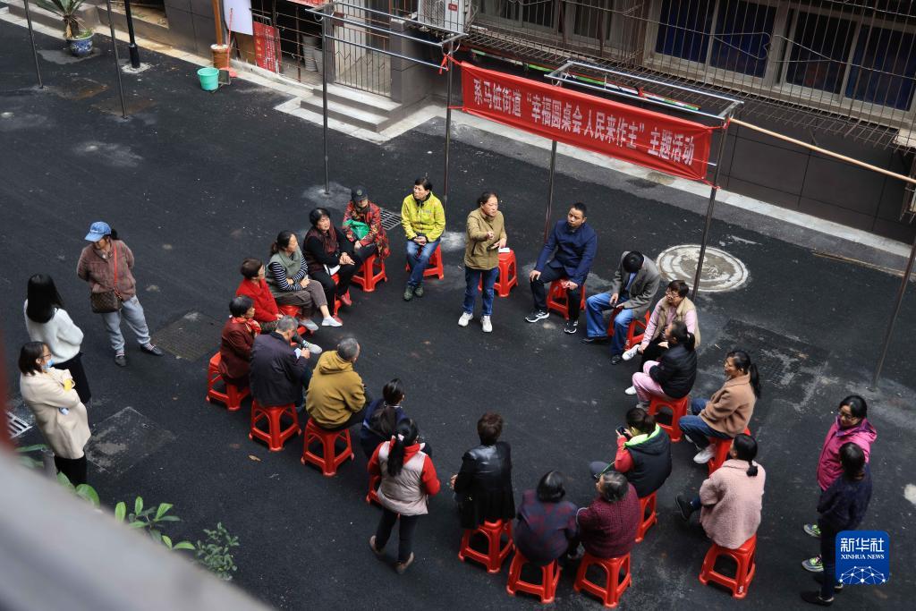 南昌市西湖区系马桩街道在罗家塘48号市委党校宿舍院开展“幸福圆桌会”。此次圆桌会主要围绕辖区居民自治公约征集群众意见,真正让居民共同参与到社区治理当中(11月20日摄)。新华社发(马悦 摄)