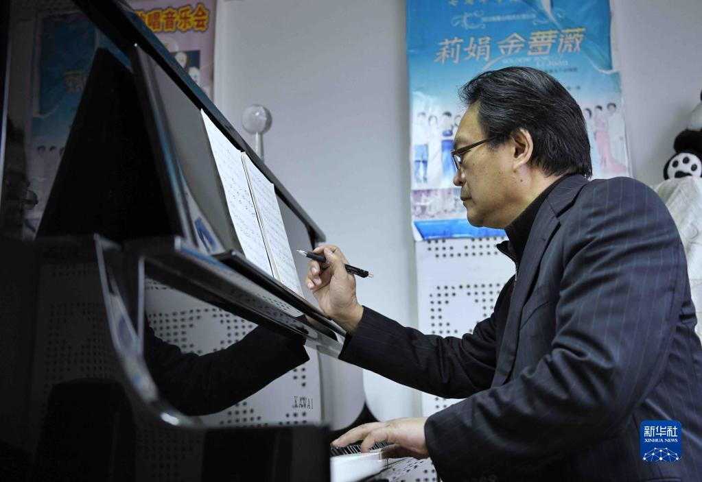 2021年12月14日,在四川音乐学院琴房,敖昌群在创作音乐作品。新华社记者 刘坤 摄