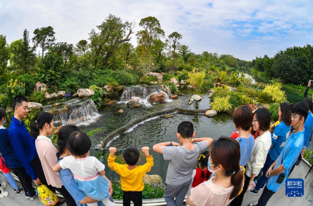 预约参观的市民在广州沥滘净水厂一处出水口参观(11月21日摄)。