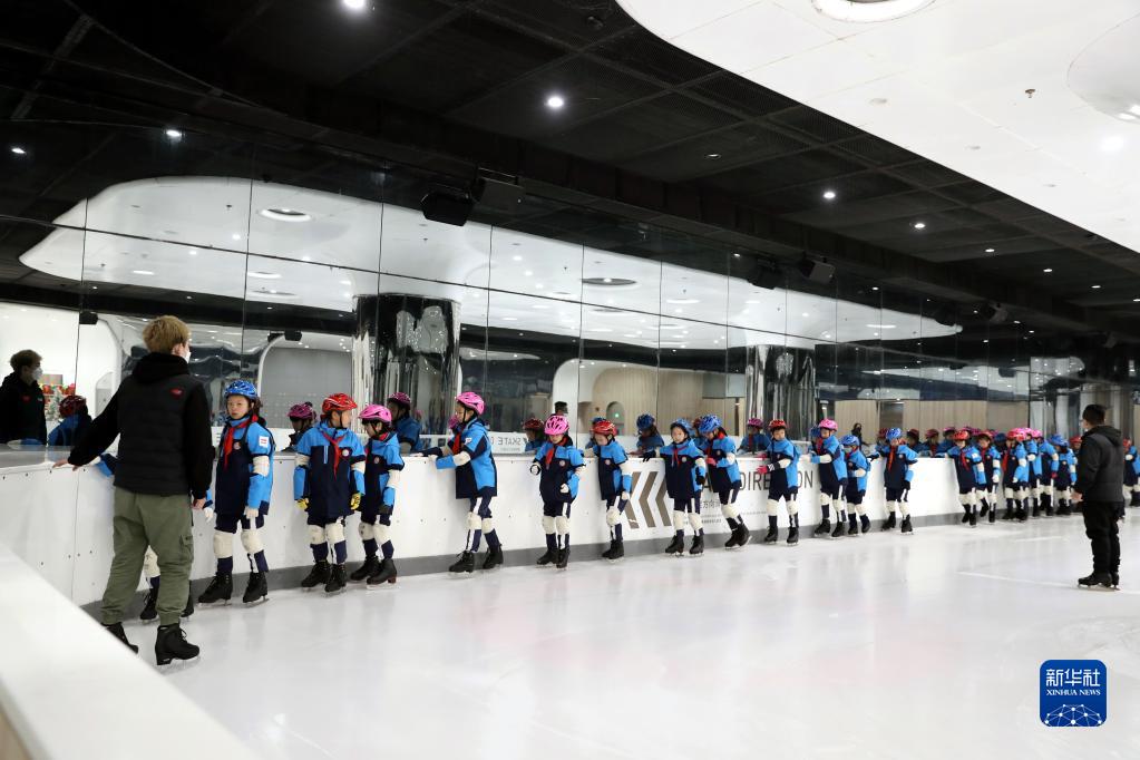 在上海新世界城的冰雪乐园,黄浦区卢湾一中心小学的学生在课堂上学习滑冰(12月22日摄)。