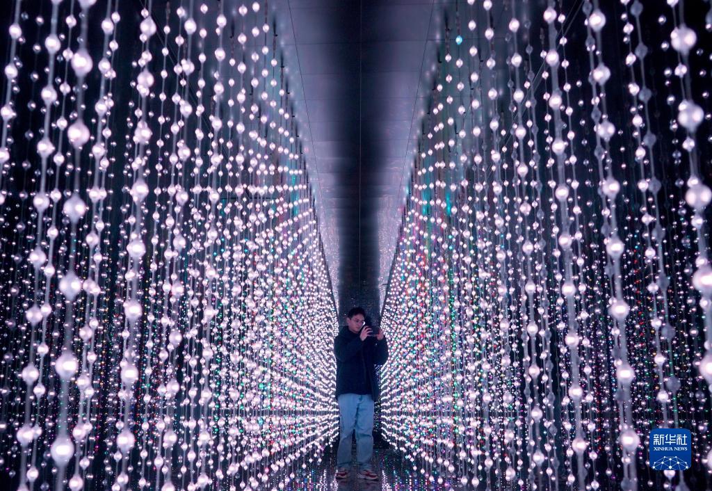 游客在河南新密市伏羲山旅游区的云上艺术馆内拍照(12月22日摄)。