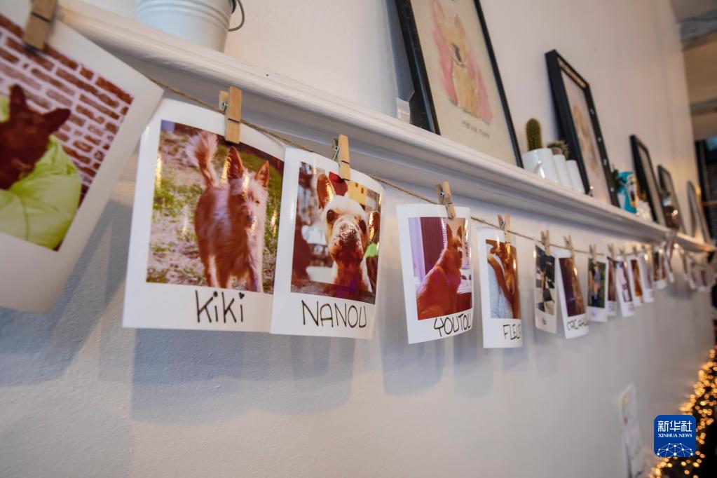 12月22日,在法国北部城市里尔名为Waf Cafe的咖啡馆,墙上挂着后来被收养的狗狗照片。