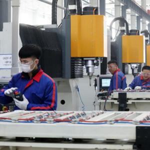12月23日,工人在淮北一家陶铝汽车部件生产企业车间内作业。