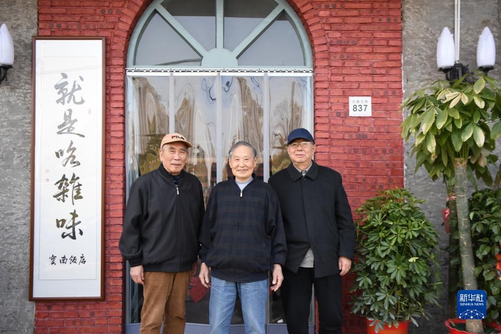这是12月22日在宝南饭店门前拍摄的马利民、余国基、魏镇(左起)。