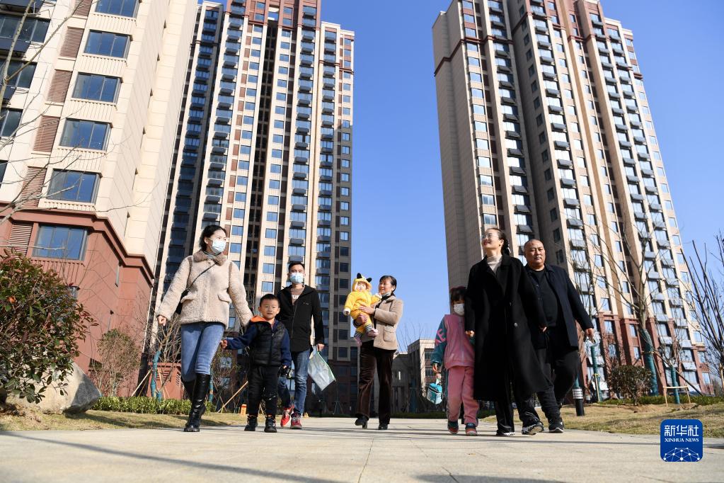 11月28日,安徽省合肥市肥西县花岗镇回迁居民在回迁安置小区内参观。