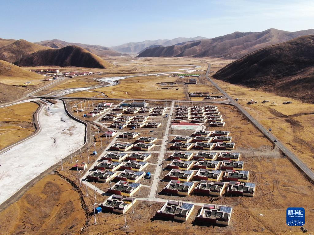 这是1月11日拍摄的青海省果洛藏族自治州甘德县上贡麻乡隆亚村搬迁点全貌(无人机照片)。