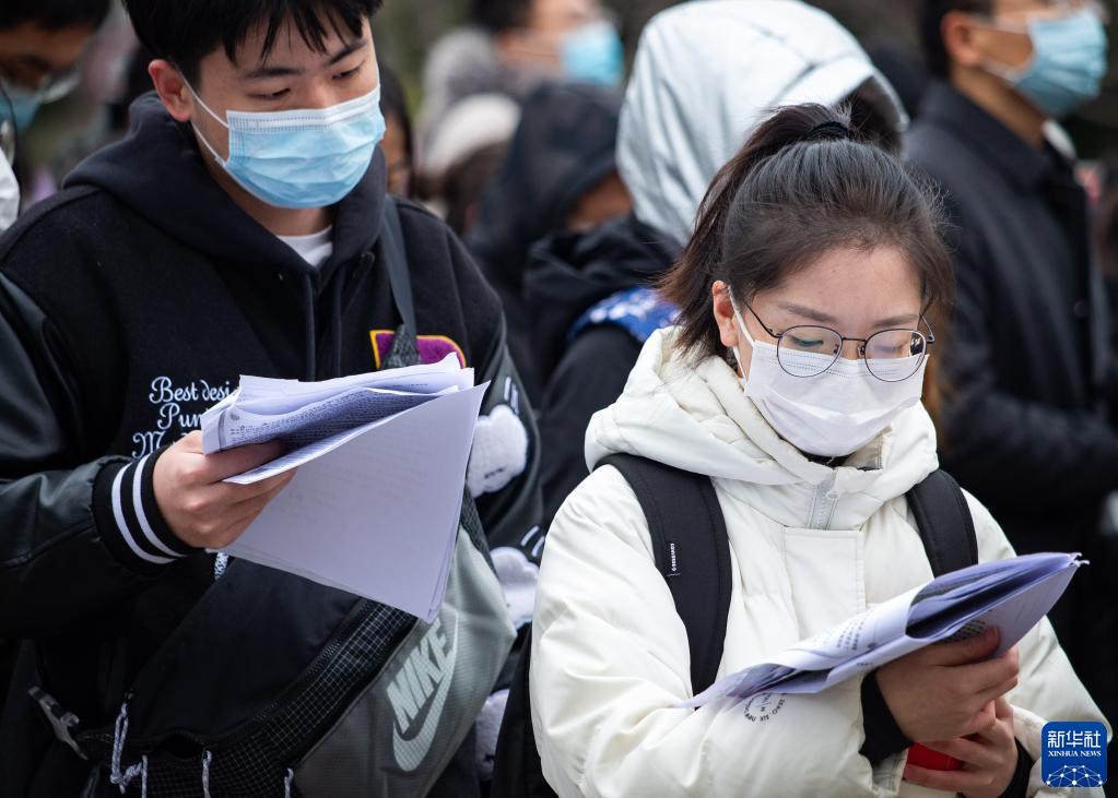 12月25日,在南京林业大学考点,考生在等候入场时复习。