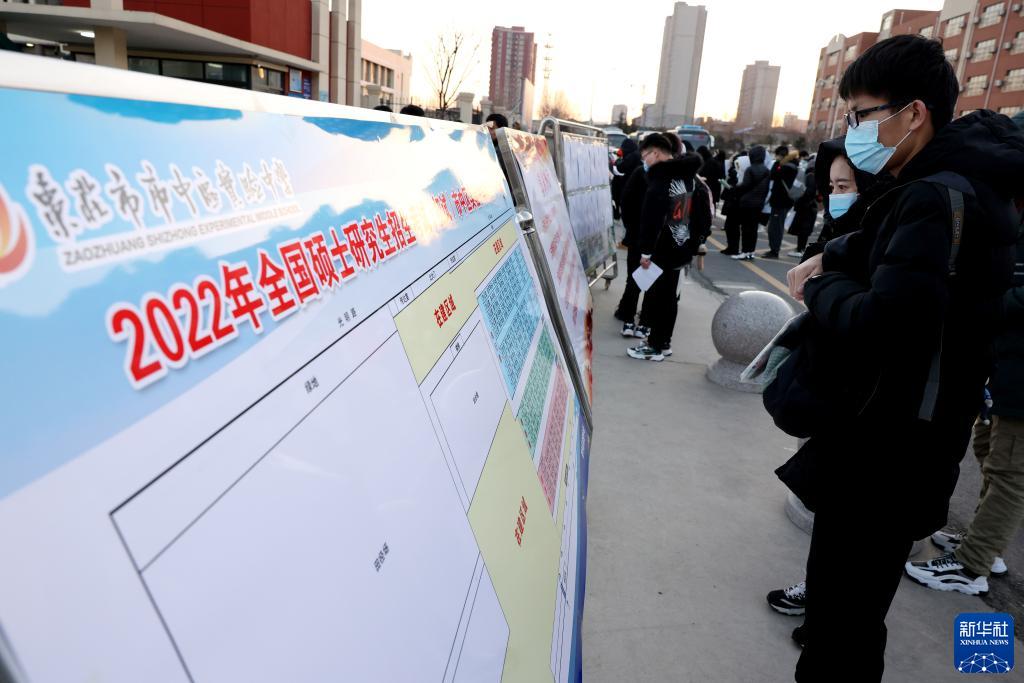 12月25日,在山东省枣庄市市中区实验中学考点,考生在考点外查看考场分布图。