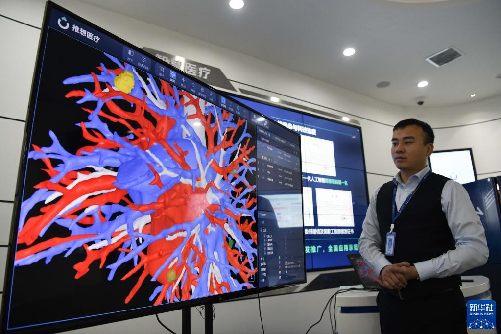 12月24日,工作人员在中国声谷体验中心内介绍一款智慧医疗产品。