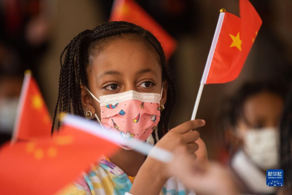 12月22日,在埃塞俄比亚首都亚的斯亚贝巴,当地儿童参加学唱中国歌曲的活动。