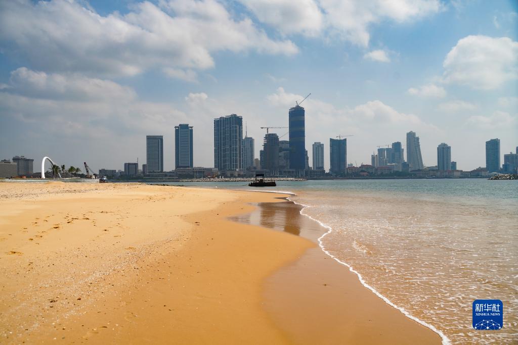 这是12月21日拍摄的斯里兰卡科伦坡港口城人工沙滩。
