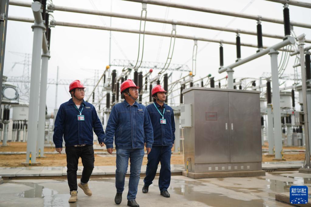 施工、监理及运行单位技术人员在位于南昌进贤县的南昌(赣江)1000千伏变电站巡检(12月21日摄)。