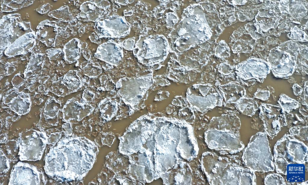 这是12月26日在宁夏石嘴山黄河大桥附近拍摄的黄河流凌(无人机照片)。