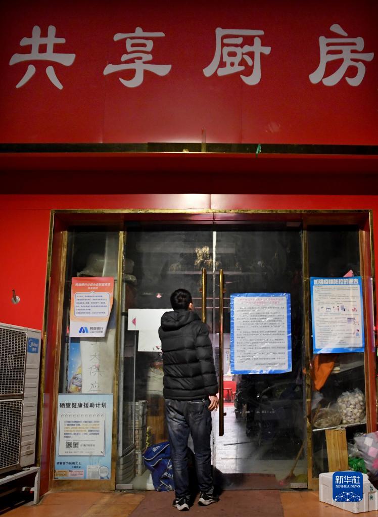 凌晨五点多,张广兵打开共享厨房的门,准备开始一天的忙碌(12月14日摄)。
