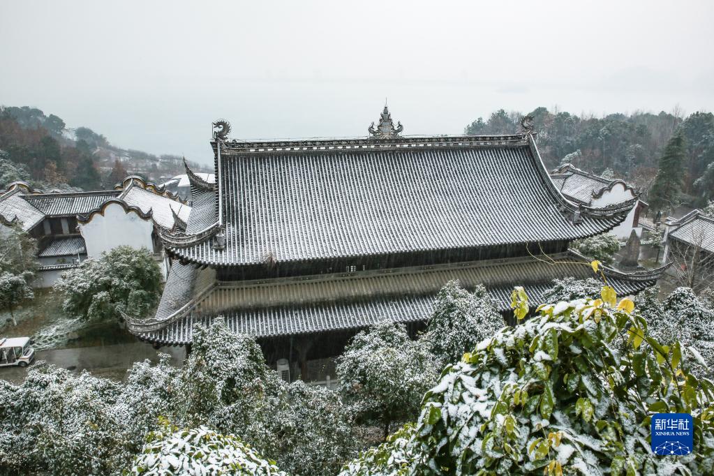 12月26日在湖北省宜昌市秭归县屈原故里景区拍摄的雪景。