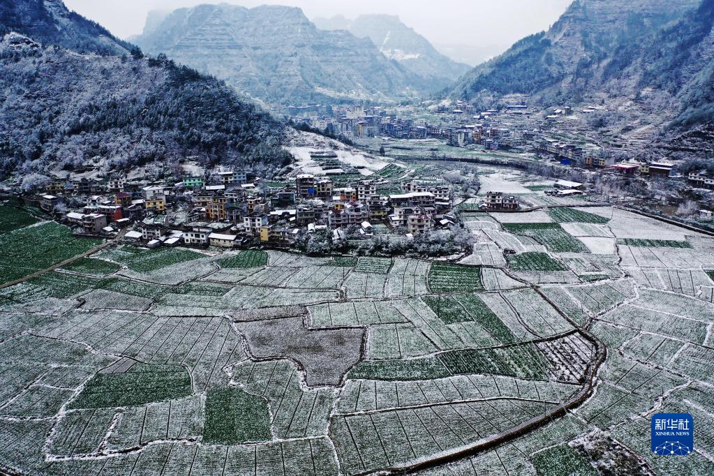 12月26日在重庆市黔江区小南海镇大路社区拍摄的雪景(无人机照片)。