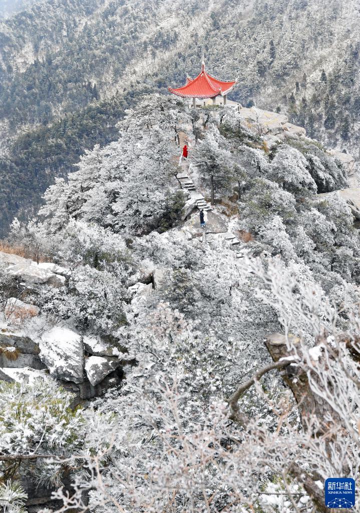近日,江西庐山迎来降雪。皑皑白雪将庐山装扮得银装素裹,宛如童话世界。
