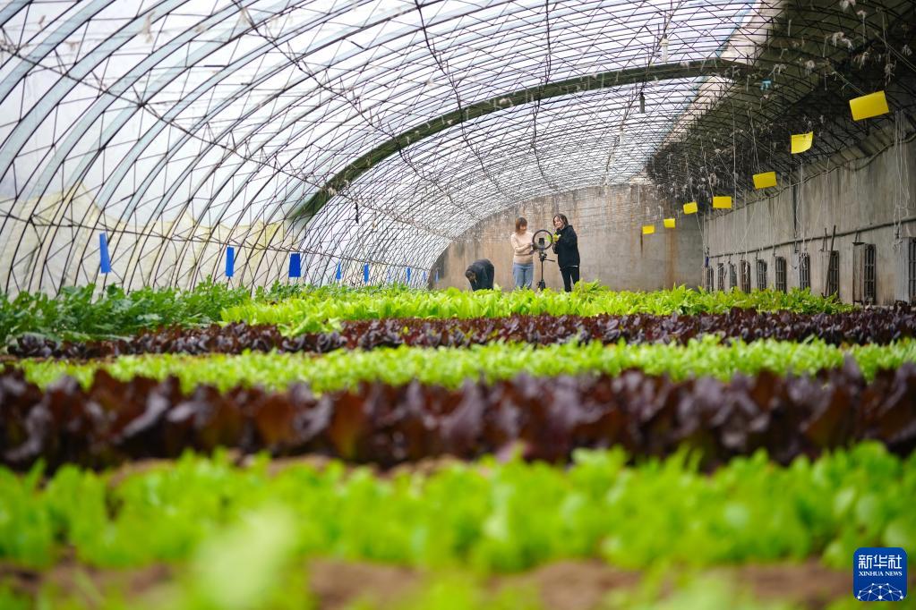 12月26日,农民在河北省迁安市一处瓜菜种植基地内利用直播的形式推介蔬菜。
