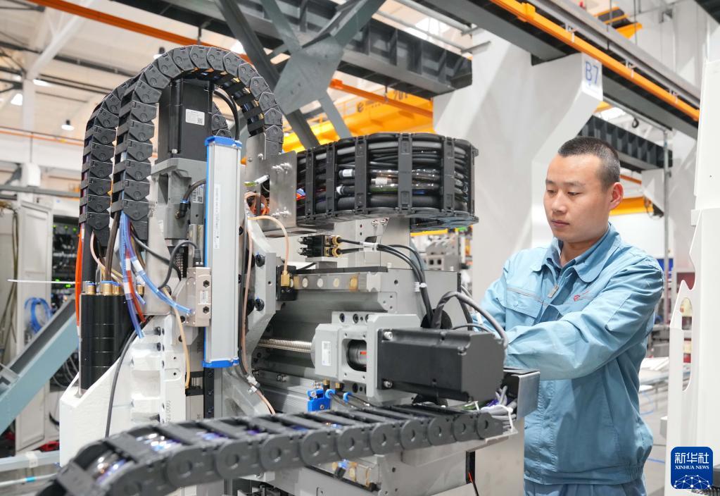 12月25日,工人在廊坊经济技术开发区一家数控机床企业的组装车间工作。