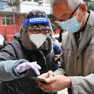12月27日,志愿者尹鹏在核查社区居民核酸采样情况。
