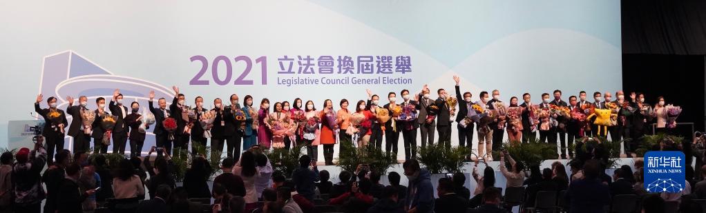 12月20日,当选选举委员会界别的议员在公布结果后合影。新华社记者 吕小炜 摄