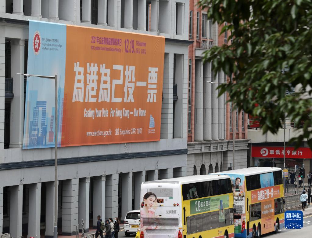 12月19日在香港街头拍摄的海报。新华社记者 李钢 摄