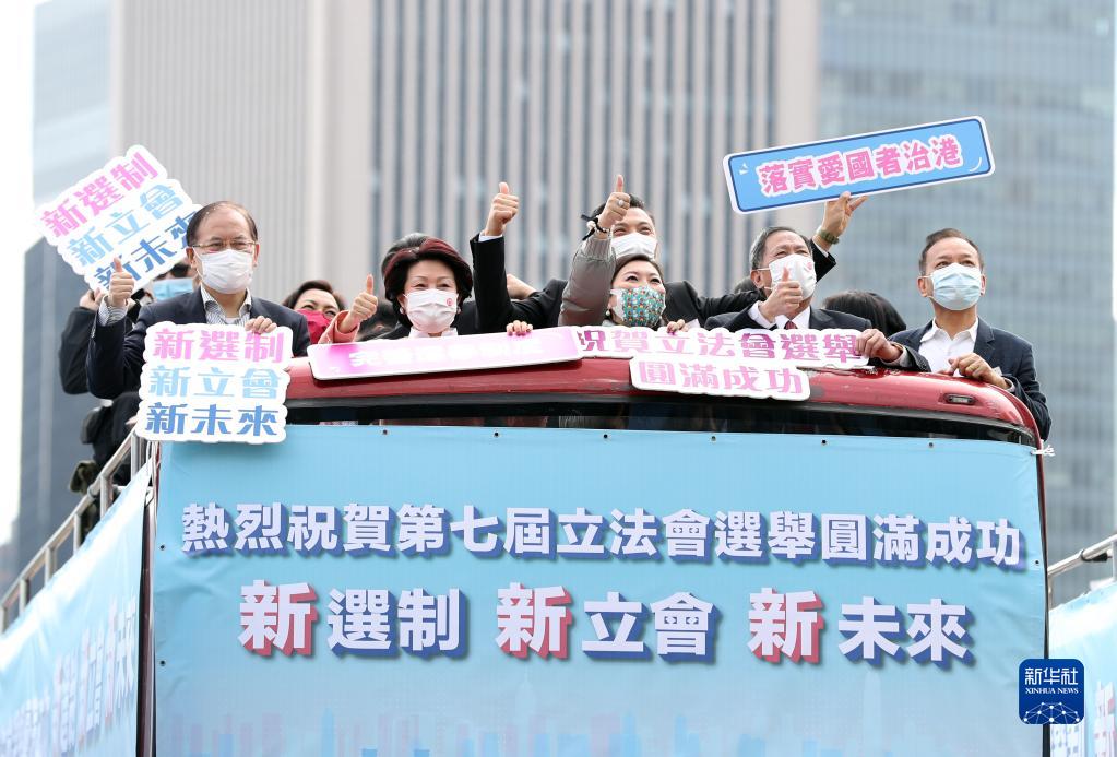12月23日,香港多个同乡社团举办花车巡游,庆贺香港特区第七届立法会选举取得成功。新华社记者 李钢 摄