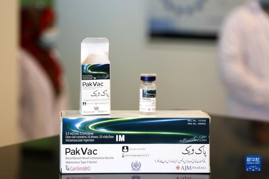 这是6月1日在巴基斯坦伊斯兰堡拍摄的本地灌装生产的中国康希诺新冠疫苗。