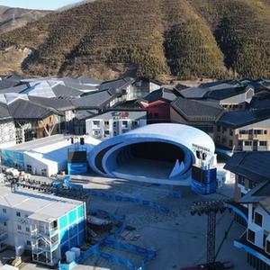 近日,位于河北省张家口市崇礼区太子城冰雪小镇的北京冬奥会和冬残奥会张家口赛区颁奖广场舞台亮相。