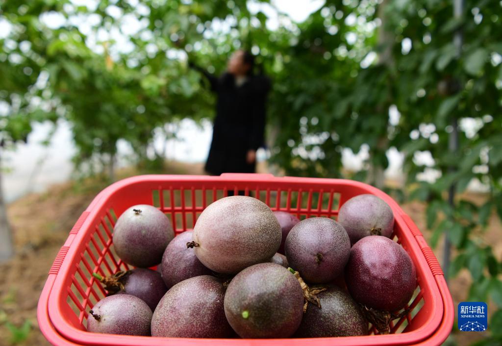 12月28日,在安徽省肥西县山南镇金牛社区祥林生态水果种植农场,村民在采摘百香果。