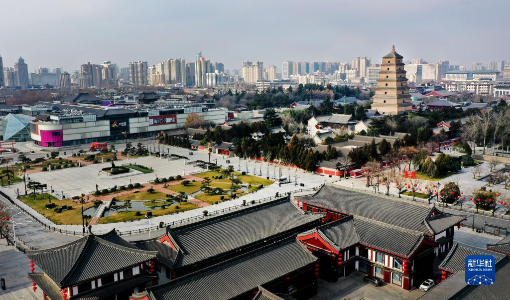 12月28日拍摄的西安市大雁塔周边区域(无人机照片)。
